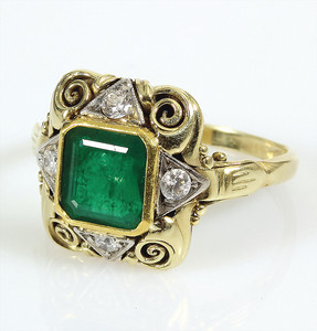 Ring, 1920/30, GG 585/000, Smaragd ca. 2,0 ct, 4 Brillanten total ca. 0,22 ct, tw-vsi, RW ca. 55,5
