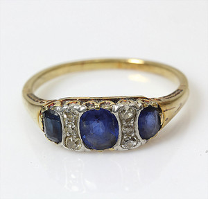Ring , Anfang 20. Jhd., Deutsch ?, GG/WG 585/000, 3 Saphire ca.1,0 ct, 4 Diamanten weiß, RW ca. 56