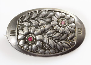 Brosche, spätes ART-DECO, Silber (nicht gemarkt, geprüft ! ), 2 kl. Rubine, 55 x 34,5 mm