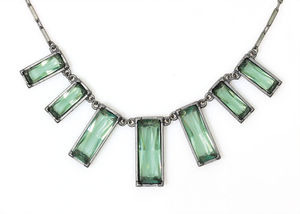 Collier, ART-DECO, sign. JUSTWIN, Metall geschwärzt, grünes geschliffenes Glas, L = 45 cm