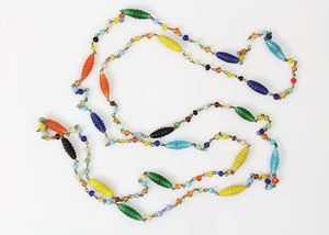 Glaskette, 1.Hälfte 20. Jhd., wohl Böhmen, mehrfarbiges teils gerilltes Glas, endlos, L = 134 cm