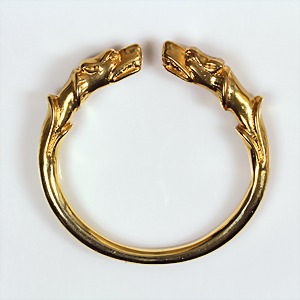 Schmaler, aber massiver Panther-Armreif (unsigniert). Mit zwei plastisch geformten Panther-Köpfen. D innen ca. 67 x 62 mm