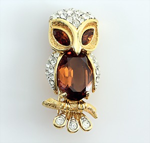 Brosche, "EULE", sign. A & S, Metall verg., Strass, H = 34,5 mm