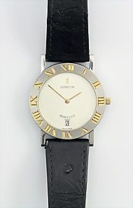 Damenarmbanduhr, CORUM ROMULUS, Quarz, Stahl verg., Datum auf 6 Uhr, verschraubter Boden (6 Schrauben), Uhr läuft (neue Batterie)