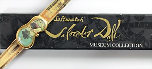Damenarmbanduhr von 1993, "SALVADOR DALI", Softwatch by EXAEQUO GENEVE, Museumscollection, Quarz, vergoldetes Gehäuse, typisches Dali Design in Nierenform !, farbig gestaltetes Ziffernblatt, Lederband mit Dornschließe, orig. Schatulle !
