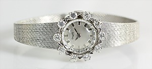 Damenarmbanduhr, ORAFA, WG 585/000, 10 Brillanten ca. 1,35 ct w-vsi/si, Strichindex, Handaufzug, L = 17 cm, Uhr läuft, sehr guter Allgemeinzustand, total 26,5 g