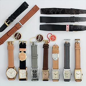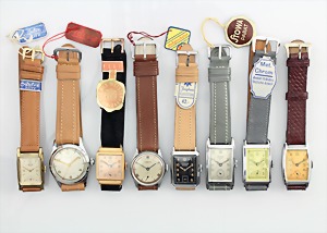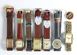 Lot: 8 Damen-Armbanduhren 1960/70 Jahre, Handaufzug, Edelstahl teilweise vergoldet, u.a.: 2 Stowa, 1 Arctos, 1 Porta, 2 Roxi, Lederbänder mit Dornschließe, Lagerware aus Auflösung ungetragen, ungeprüft, Überholung erforderlich, verharzt !