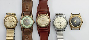Lot: 5 Herrenarmbanduhren, u.a.: 1 JUNGHANS mit Zugband; 1 BERGER Automatik mit Zugband; je 1 ORFA u. ANKER; 1 BIFORA ohne Band, ungeprüft