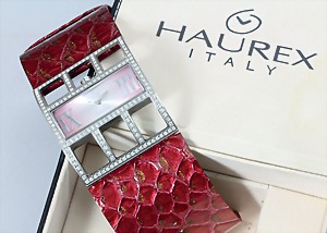 Damenarmbanduhr, HAUREX ITALY Gabbia, Quarz, Edelstahl mit weißen Steinen ausgefaßt, Lederband, ausgefallenes Design, mit Originalschatulle