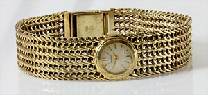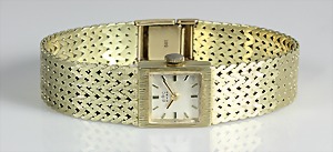 Damenarmbanduhr, "PIAGET", GG 585/000, Strichindex, Band mit Klappschließe, L = 21,5 mm, total 49,5 g, Uhr läuft nicht