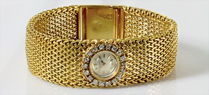 Damenarmbanduhr, "PIAGET", GG 750/000, 18 Diamanten ca. 0,21 ct weiß, Strichindex, Krone flach auf Gehäuseboden integriert, sehr weich und flexibel gearbeitetes Band mit Klappschließe, L = 18,3 mm, total 48,4 g, Uhr läuft