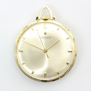 Taschenuhr, "JUNGHANS", GG 585/000, Strichindex, Zentralsekunde, D = 35,0 mm, Uhr läuft, Lagerware aus Auflösung ca.1960/70er Jahre, ungetragen ! Uhr läuft