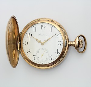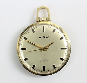 Taschenuhr, "HUBBUCH", GG 585/000, Strichindex, Zentralsekunde, D = 33,5 mm, Uhr läuft, Lagerware aus Auflösung ca.1960/70er Jahre, ungetragen ! Uhr läuft