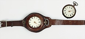 Damenarmbanduhr, (umfunktionierte Taschenuhr) um 1900, Silber 800/000, Uhr läuft nicht, sehr gut erhaltenes orig. Lederband mit Dornschließe