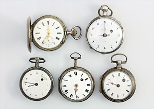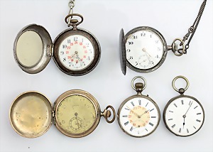 Lot: 4 Spindel-Taschenuhren, u.a. 1 x sig: B. LIEBHERR LANDSHUT, teilweise fehlen Zeiger und Glas, ungeprüft und eine Taschenuhr gratis !