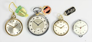 Lot: 4 Stück Taschenuhren, 1 STOWA (läuft)1 KIENZLE (läuft), 1 ARCTOS, 1 x FAVOR, D = 35 - 45 mm, teilweise Lagerware aus Auflösung ca.1960/70er Jahre, ungetragen !