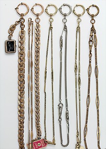 Lot: 7 Uhrenketten, Metall/Double, Uhrenfederring oder Karabiner, 1 Medaillon mit Onyx ? Intaglio