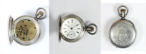 Herrentaschenuhr, ROCKFORD ILLINOIS, Ende 19.Jhd., Silber, signiert: Rockford, E.Z.Blatt mit 1-2 feine Haarrisse , röm. Index, kl. Sekunde auf 6 Uhr, Werk sign: (Patent?) Pinion, Rockford Jll. Deckelscharniere versetzt angebracht, beide Deckel graviert, D = 60,6 mm, Uhr ist sehr schwer gearbeitet total 219 g, Uhr läuft
