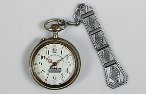 Damen-Zylindertaschenuhr, Silber 800/000, sig: A. Hubert jr. Hofuhrmacher München, Gehäuse hinten fein graviert, Z.B. Silber, sehr gut erhaltenes E.Z., verg. Zeiger, arab. Zahlen, fein abgesetzte goldene Minutenpunkte, D = 32,3 mm, Uhr läuft, nachträgliche Schlaufe kann problemlos entfernt werden !