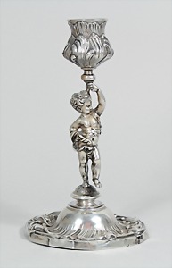 Kerzenleuchte im Rokokostil, 1860/70 FRANKREICH, Silber, H = 17,0 cm, altersgemäßer Zustand