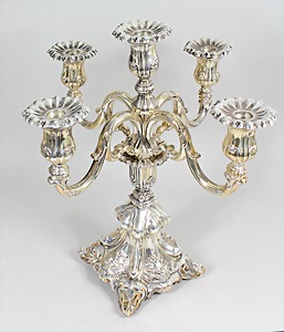 Kerzenleuchter im NEO-BAROCK 1.Hälfte 20.Jhd., Silber 925/000, unterhalb der Arme abnehmbar, ca. 1,75 kg, Fuß gefüllt