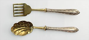 Lot: Tomatenmesser (ungewöhnliche Klinge), Gabel (Zinken vergoldet), Griffe versilbert 90, L = 18,7 - 20,3 cm