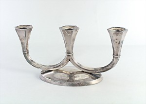 Kerzenleuchter 1930er Jahre, Silber 850/000, dreiarmiger Leuchter mit ovalem Fuß, gradliniges 6-eckiges Design, H = 12 cm, B = 26,5 cm, total 214 g