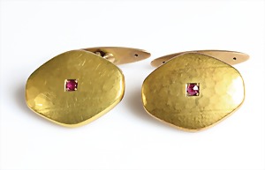 Manschettenknöpfe um 1910/15, GG 333/000, 2 rote Steine, mit feinem Hammerschlag, ca. 19,3 x 15,0 mm