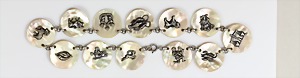 Kette mit allen Sternzeichen, "VINTAGE" 1930er Jahre, Silber (geprüft), Perlmuttscheiben D = 30,0 mm, plastisch ausgearbeitete Sternzeichen, L = 42,5 mm