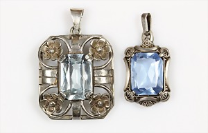 Lot: Anhänger 1920/30 Jahre, Ag 835/000, blaue facettierte Steine, ca. 34 x 27 mm und 27 x 17 mm (Maße ohne Schlaufe !)