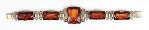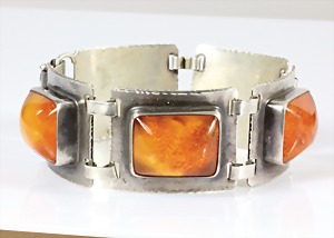 Armband Mitte 20.Jhd, Silber 835/000, 5 Bernsteine rechteckig geschliffen, Kastenschloß mit Sicherheitsacht, L = 19,5