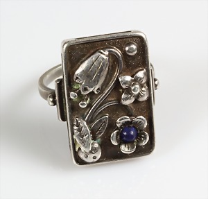 Ring 1920/30er Jahre, Silber 835/000, Blumenblüten mit Lapiscabochon, RW ca. 53,0 cm