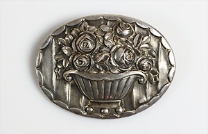 Brosche "BLUMENBOUQUET" um 1920/30, Silber 835/000, reliefartig gestaltete Oberfläche, D = 36,3 x 42,0 mm