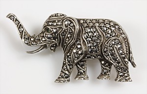 Brosche, "ELEPHANT" 1930er Jahre, Silber (geprüft), Markasiten, plastisch ausgearbeitet, ca. 44,0 x 24,5 mm