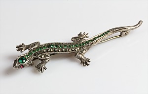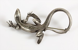Brosche, EIDECHSE 1920/30er Jahre, Silber 835/000, Markasiten, plastisch ausgearbeitet, ausgefallene Form, L = 66,5 mm