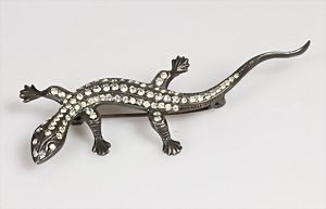 Brosche, "EIDECHSE" 1920/30er Jahre, Silber 925/000, Streifen mit leuchtend weiß facettierten Strasssteinen, plastisch ausgearbeitet, L = 65,0 mm