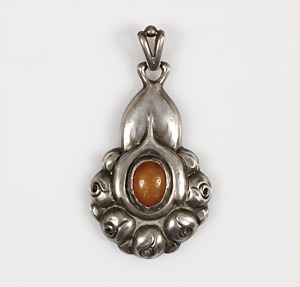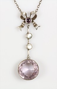 Anhänger, "IDAR-OBERSTEIN" um 1900, Silber 800/000, Amethyste, Perlmutt, H = 44,5 mm, Kette L = 45,0 cm