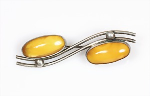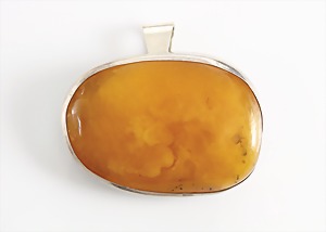 Anhänger/Brosche, "BUTTERSCOTCH", Polen (Danzig), Silber 925/000, signiert: BIELAK K 925 BKB großes schönes Stück, ca. 76 x 56 mm, total incl. Ag Fassung 79,0 g, (Schlaufe abnehmbar)