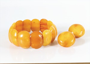 Bernsteinkette ART-DECO, "BUTTERSCOTCH", Oliven D = 6,8 x 19,8 mm, vordere Olive 24,5 x 19,8 mm, schön gedrechselte Drehschließe, L = 74 cm, total 40,8 g