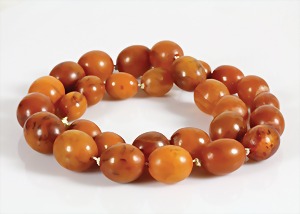 Bernsteinkette, BUTTERSCOTCH, Oliven im Verlauf ca. 20 x 14 mm bis 10 x 8 mm, L = 44 cm, total 21 g