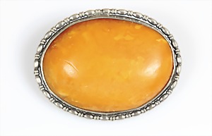 Bernsteinbrosche "BUTTERSCOTCH", ART-DEKO 1920/30er Jahre, Silber 800/000, ca.37,5 x 38,5 mm