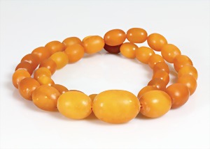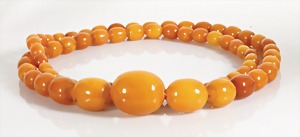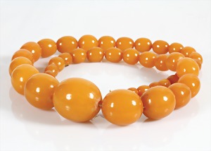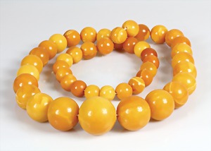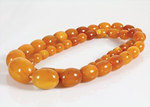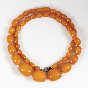 Bernsteinkette 1.Hälfte 20.Jhd, "BUTTERSCOTCH", Bernsteinkugeln, D = 10,5 - 23,3 mm, Drehschließe, L = 63,0 cm, total 82,6 g
