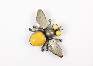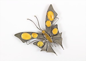 Brosche im "JUGENDSTIL", 2. Hälfte 20.Jhd, "BUTTERSCOTCH-SCHMETTERLING", Polen, Silber 925/000, signiert: G 925 JG, Doppelnadel, 85,5 x 83,0 mm