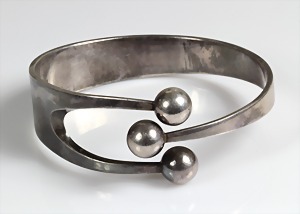 Armreif, nordisches Design, Silber 925/000, signiert: AGE STERLING 925 S NORWAY, innen D = 61,5 mm