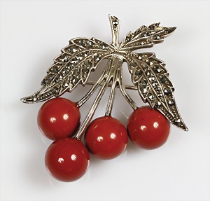 Brosche "KIRSCHEN" 1.Hälfte 20.Jhd., Silber 935/000,Markasiten, Silexkugeln, 39,5 x 38,5 mm