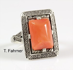 Ring "THEODOR FAHRNER" Pforzheim, Silber, sig.: TF, Korallenrechteck, RW ca. 52