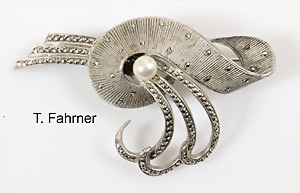 Brosche, "T.FAHRNER", Silber 800/000, sign.: TH.F, mit Markasiten ausgefasst, Oval ca. 58,0 x 34,5 mm