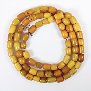 "PRIMITIVGELD" (Moneta nigretarum), ursprünglich aus Ost-Preussen kommender Bernsteinimitat gelangte u.a. über Tschiputi nach Afrika. Dort wurde das Bensteinmaterial weiterverarbeitet und fand als sogenanntes "Primitivgeld" weitere Verwendung. D = 12,5 - 17,0 mm, L = 133, total 256,7 g