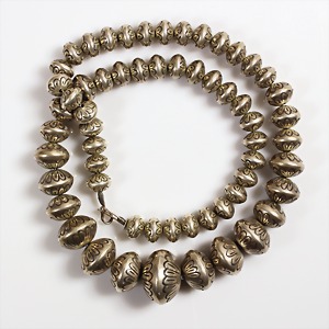 Kette, INDIEN, wohl älter, Silber, verzierte Linsen, D = 11,6 - 25,0 mm auf Silberkette aufgezogen, L = 61,0 cm, total 155,3 g