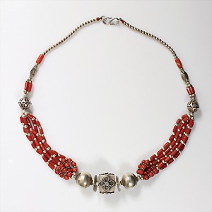 Collier Vorderasien, Silber, Korallenkugeln u. Walzen, vordere Kugel D = 20 mm, S-Haken, L = 50,0 cm